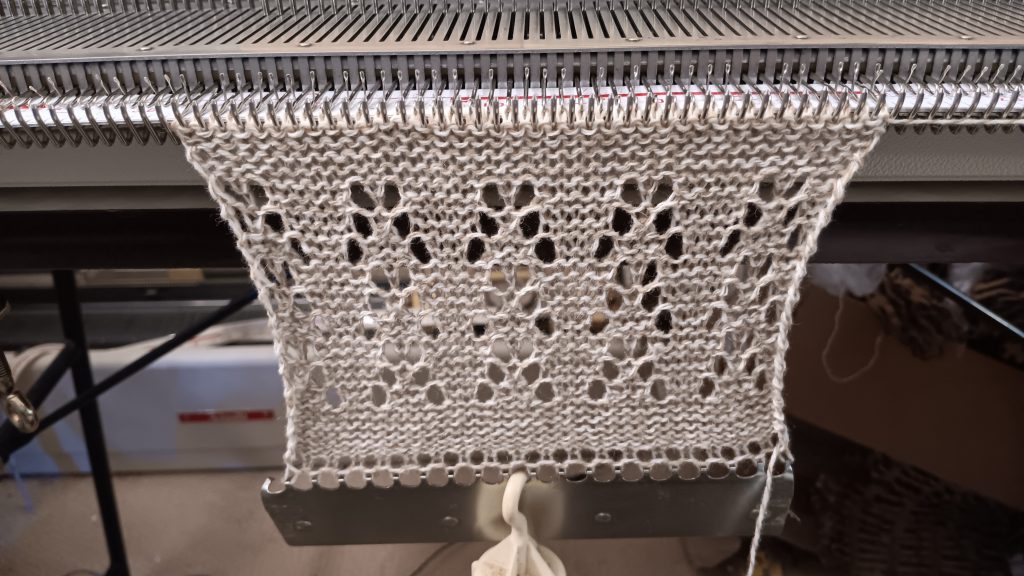 A couple of comments about the knitting tests. Knitting on a full bed is important to demonstrate that the machine can handle the tension differences (which depend on the weights’ distribution, claw weights position, cast-on comb attachment, edge-weights, etc.) and that all needles produce correct stitches. All the tests I performed went great with this machine. The carriage was running smoothly, and at a perfect combination of yarn, tension, and lubrication could be moved with just one hand.