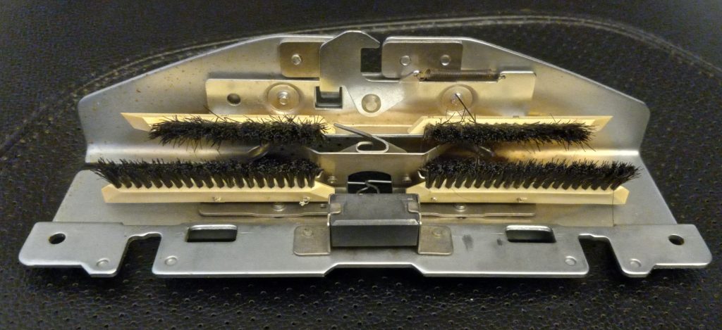 - Due to the old gunk and dried-up oil, some of the moving levers (responsible for guiding the needles through the intricate passages of the carriage) get stuck. If you suspect a lever does not move, check against the same lever on the mirror side of the carriage: compare its movement, how fast it retracts, etc. SOLUTION: Apply Kroil oil around the lever to remove the old gunk.