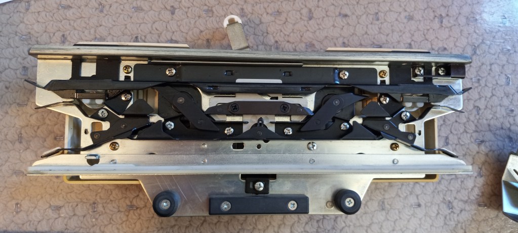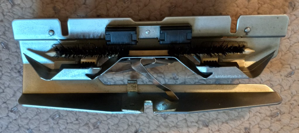 On this machine, I cleaned and inspected all needles. I cleaned the needle bed and the carriage. I inserted a new needle-retaining sponge.