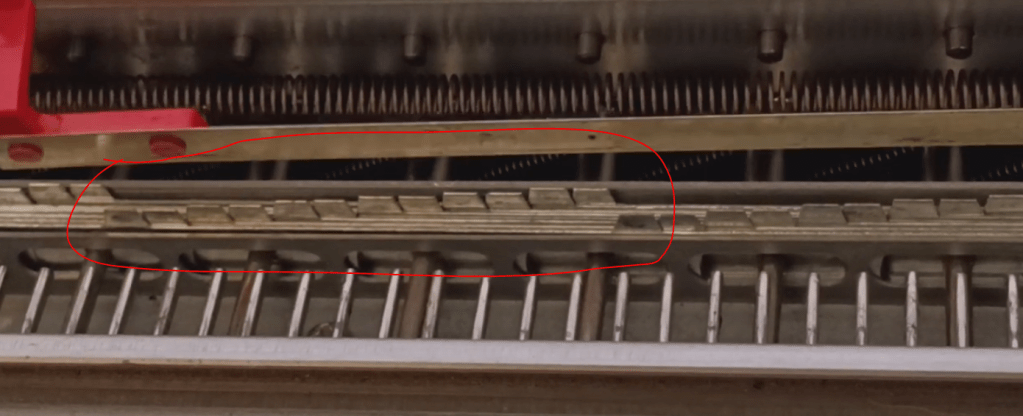 When I was refurbishing a Brother KH800, I had to open the case up to see why the machine was mispatterning. I, thus, had a lot of fun looking at how the patterning works. (By the way, mispatterning was due to the selection strips/plates being tucked together – nothing that a good layer of Kroil oil can’t fix).