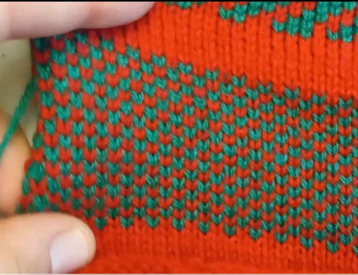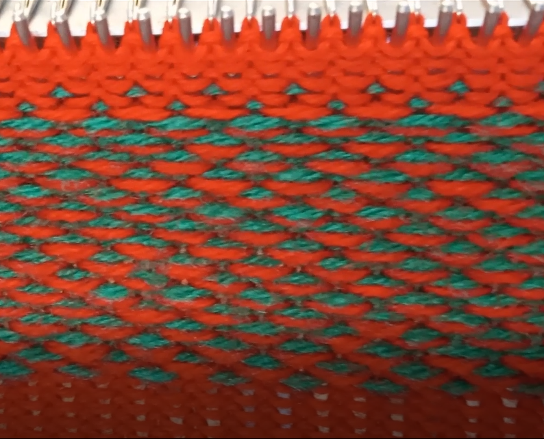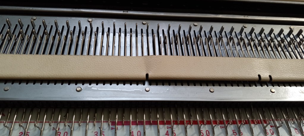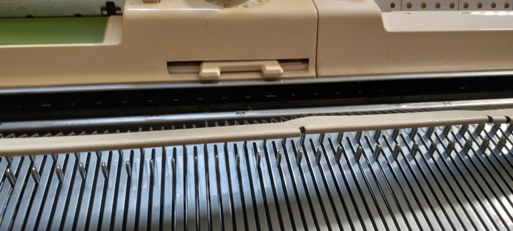 The machine was tested by knitting on a full bed to ensure that the patterning is flawless on the whole needle bed and that all needles form the correct stitches. Watch the video of these tests. I demonstrated in another video how a faulty needle was identified and replaced. after it was replaced, all stitches formed very nicely. The patterning on the full bed was done using tuck-, slip- (part) and fair-isle stitches. All patterns were knitted beautifully.