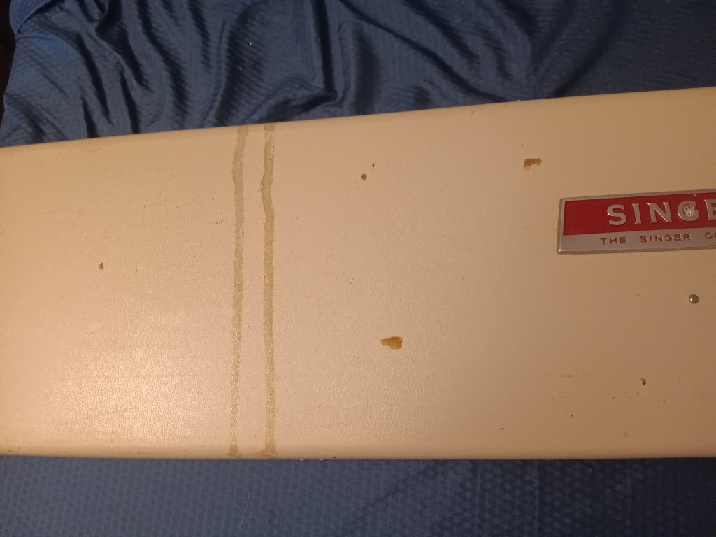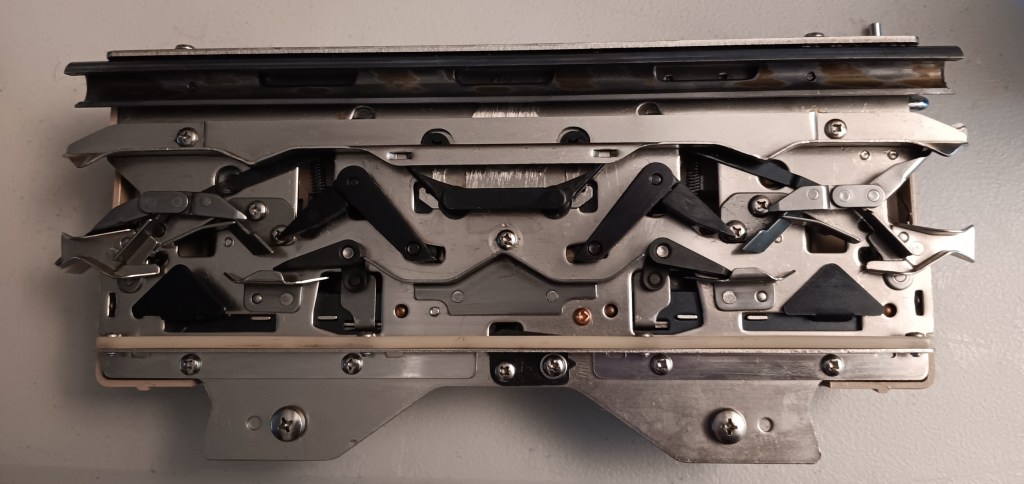 - The underside of the carriage has some discoloration and scratches on the metal. Discoloration looks a bit like rust (but is still smooth) so I covered it with a protective coating. None of these affected knitting: the carriage still glides smoothly and no static is forming (although static accumulation can also depend on the yarn).