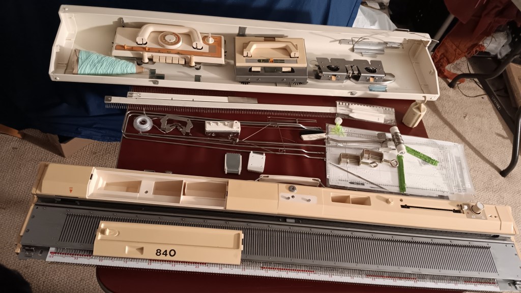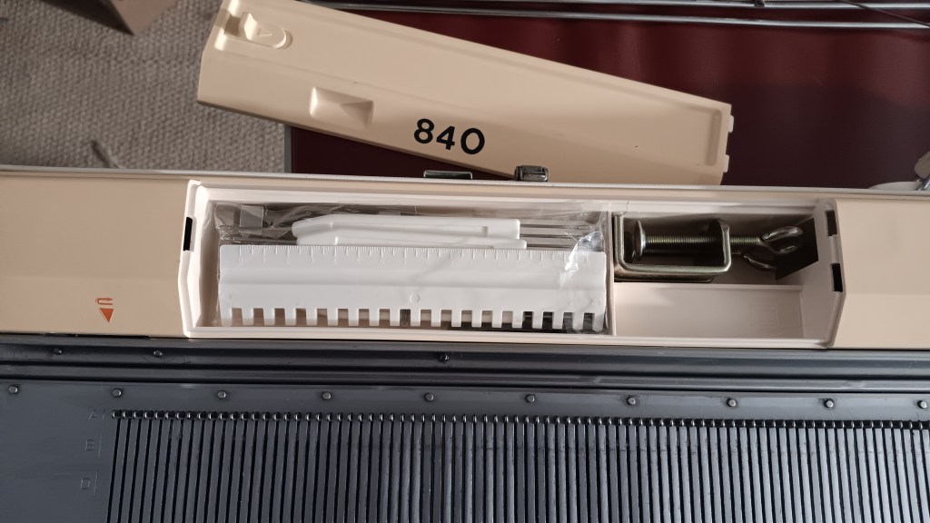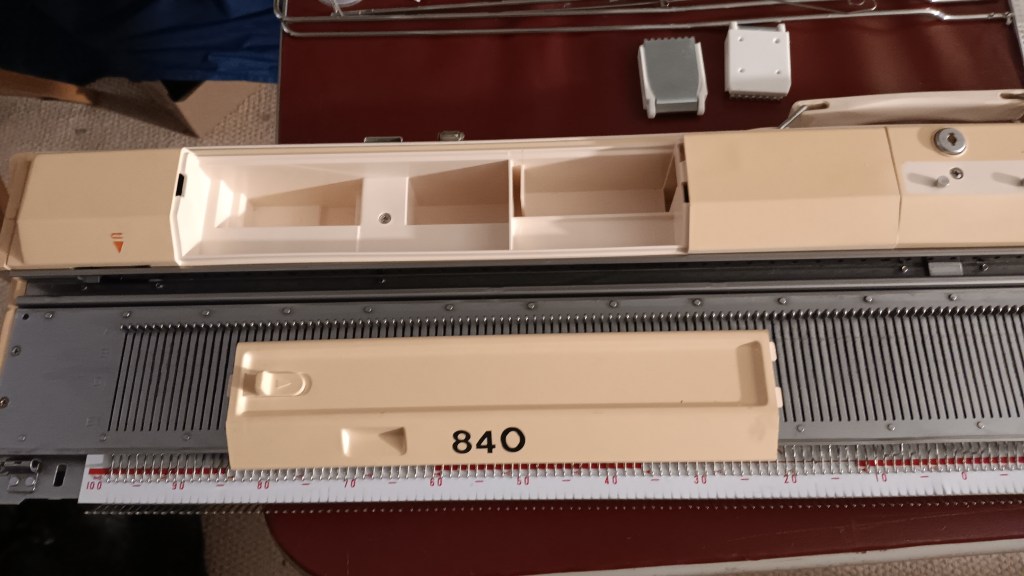 Brother KH840 knitting machine has 200 needles, 4.5 mm apart. Read about the pros and cons of this model in my Knitting Machine Encyclopedia. This article is dedicated to a specific Brother KH840 machine serviced and fully tested in my shop in January 2026.