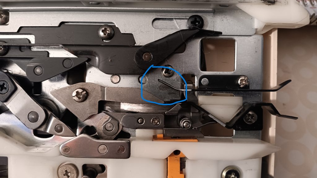 The punchcard mechanism lever is a 3D printed replacement.