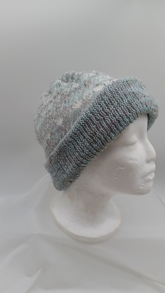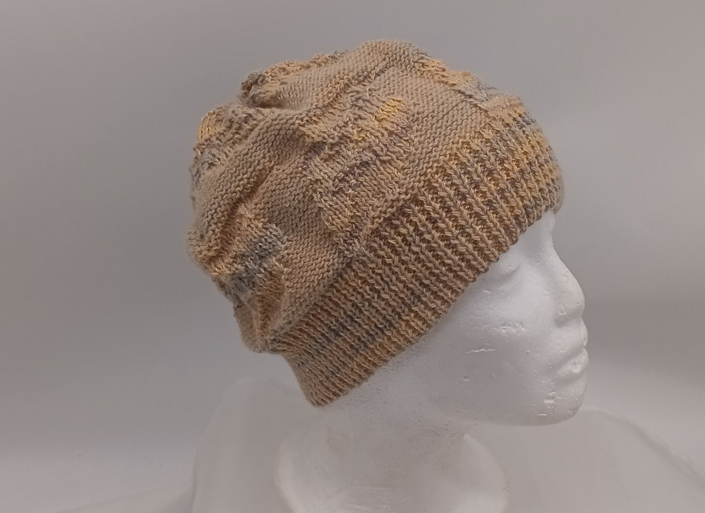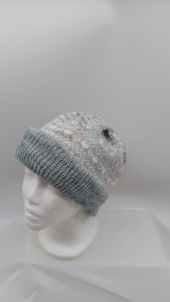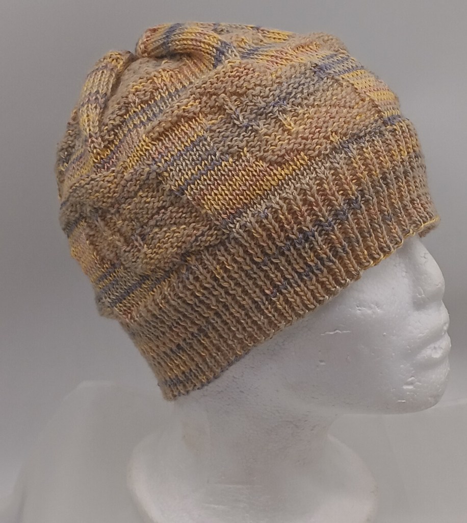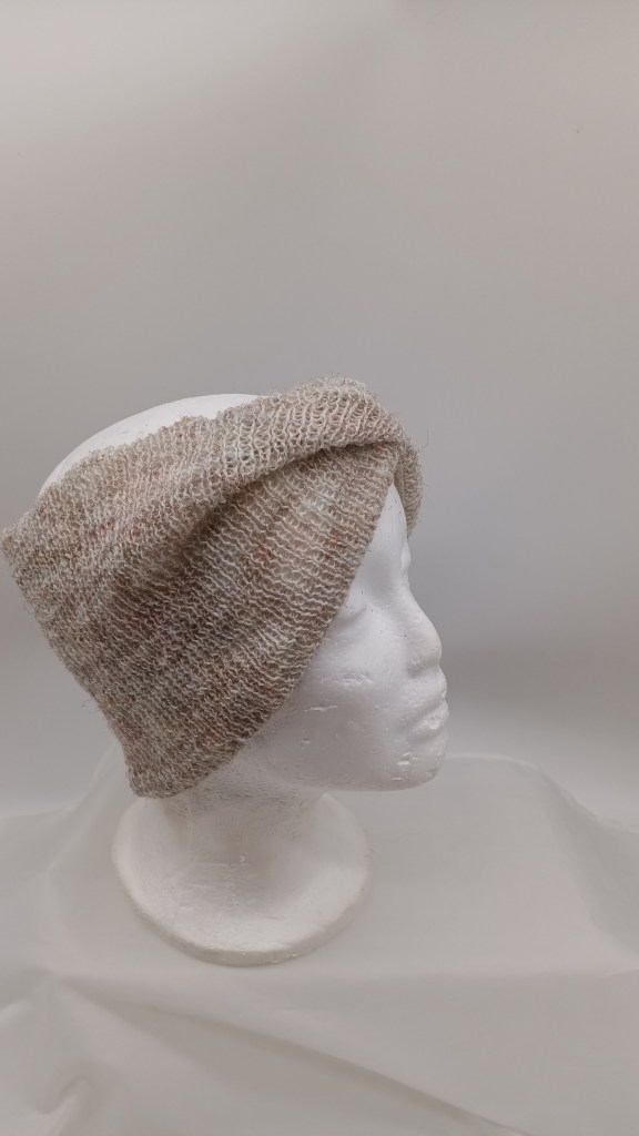 The panel knitted while testing this ribber were converted to a hat (the brown ribbing in on the “right” side and the greyish ribbing is on the inside), which will go to charity during our local Thanksgiving and Christmas hat and scarf drive.