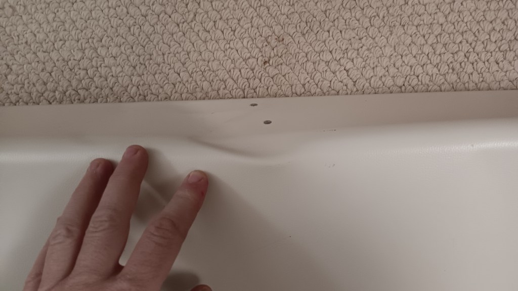 End caps on the main bed have discoloration. End caps on the lid are new (I specially 3D printed them out of a very durable material because they were cracked). The plastic rivets are also brand new.