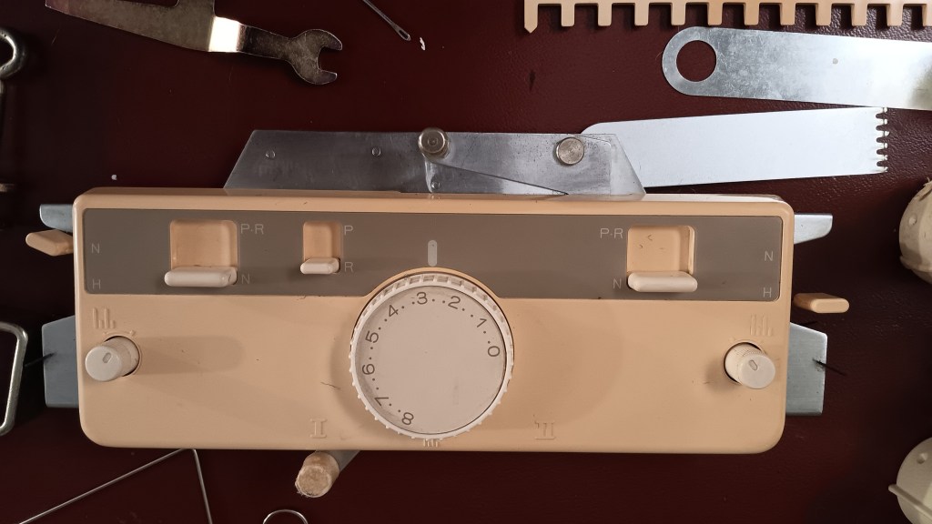 Knitking RK900 ribber fits most Brother and Knitking knitting machines with punchcard and electronic capabilities. It is identical to the Brother KR850, KR890 and KR900 ribbers. Thus, read the corresponding articles about their pros and cons in my Knitting Machine Encyclopedia. The rest of the blog post below is dedicated to a specific ribber, serviced and tested in my shop in November 2025.