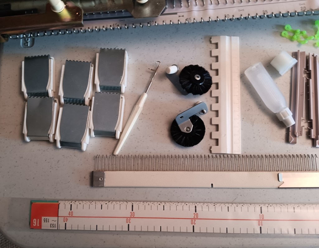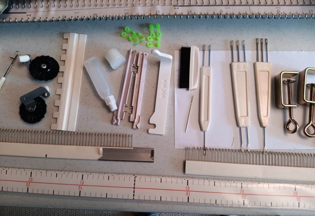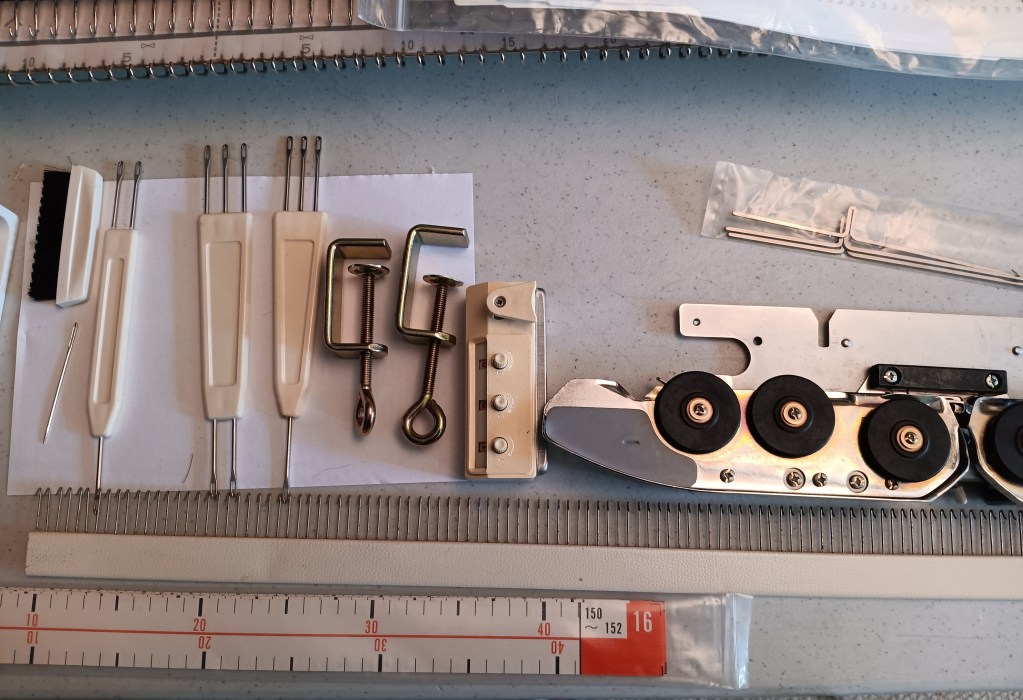 I also liked very much the intuitiveness of this machine. For example, when I was a newbie on my metal flatbed machines, I always had to look in the manual as to what the position of the levers meant; what I need to do to simply slide the carriage without knitting. On Singer HK100 there are not that many levers and the only function of the levers on the side of the carriage is to NOT KNIT ๐ You will see in my video that after I made a mistake, I simply pressed the lever and slid the carriage out of the way without knitting.