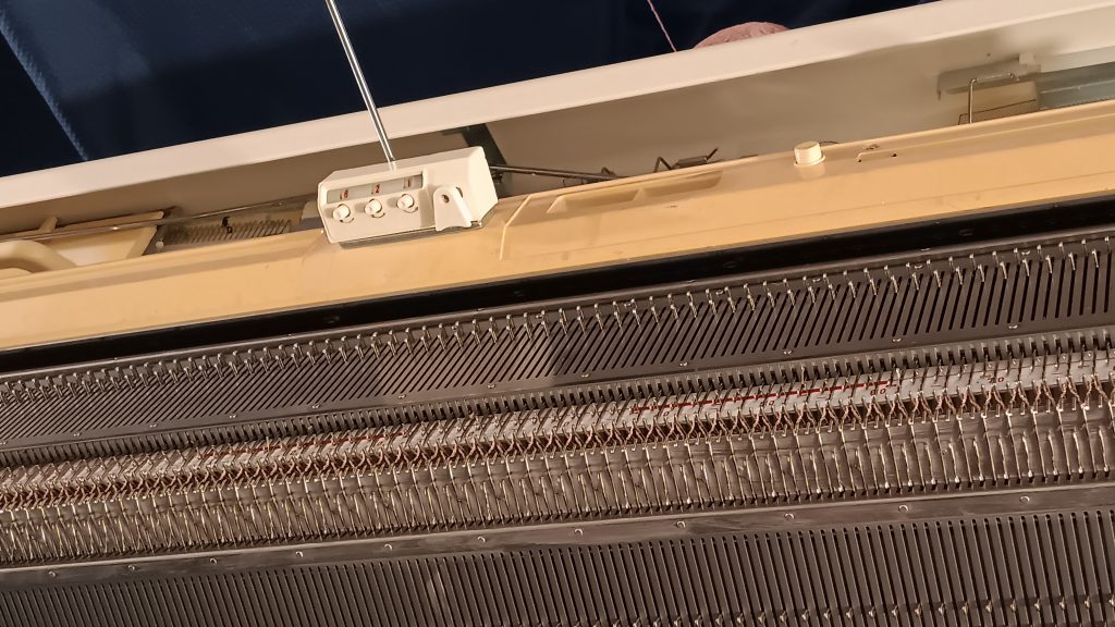 To ensure that the carriage functions well and that all needles form correct stitches, I knitted on a full bed but on every other needle. Thus, I tested two sets of every other needle position. Everything went great: watch the video of my tests here.